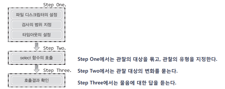 select 함수를 호출하기 위해서는 아래와 같은 순서를 지켜야한다.