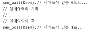 세마포어 카운트가 0이며 진입불가, 0보다 크면 진입가능이다. 그래서 post하면 세마포어 값이 1로 변하고 wait하면 0으로 바꾼다.