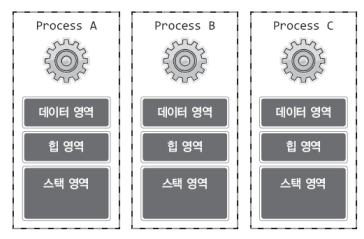 프로세스의 생성에는 많은 리소스가 소모되고, context switching으로 성능이 저하된다. 그리고 프로세스간 메모리가 독립적으로 운영되어 데이터 공유가 어렵다.