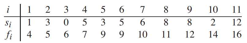 - 각 활동의 종료시간 F = {f1, f2, ... fn}