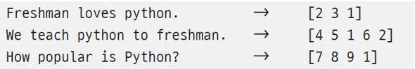 단어들을 수집하고 빈도수로 정렬을 한 다음 숫자 부여 -> 텍스트를 숫자 코드로 변환