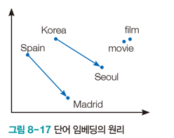 단어 임베딩을 사용하면 단어 간의 관계성도 알아낼 수 있다.