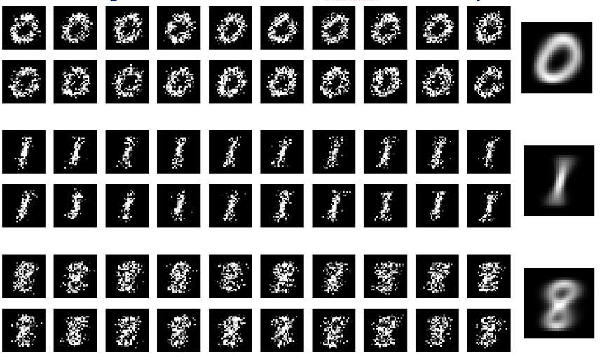 화소별로 학습해 생성한 결과는 그리 좋지 않게 보인다. 그래서 뒤쪽에 나오는 오토인코더나 GAN 등이 만들어졌다.