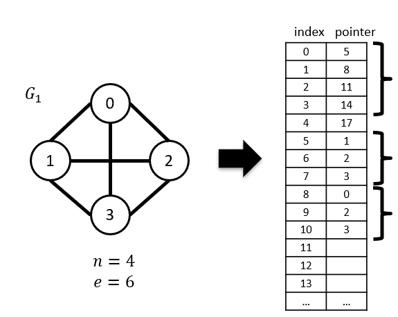 위 그림에서 0 ~3 번째 index의 값은 vertex에 연결된 edge의 정보가 있는 곳을 나타낸다.