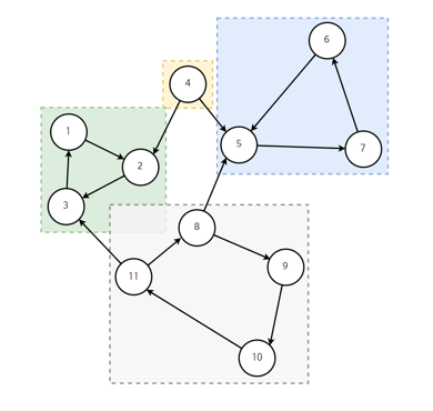 - Strongly connected component : '강하게' 연결된 정점 집합