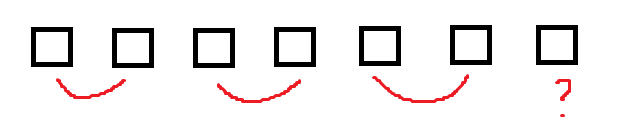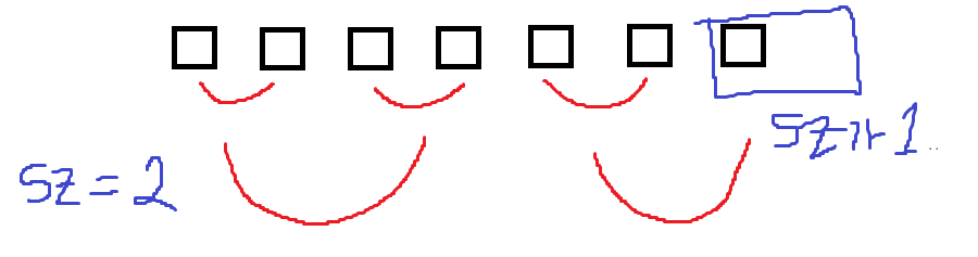 배열의 길이가 7일 때를 생각해보자. 처음에 2개씩 묶다보면 마지막 한 조각이 남는다.