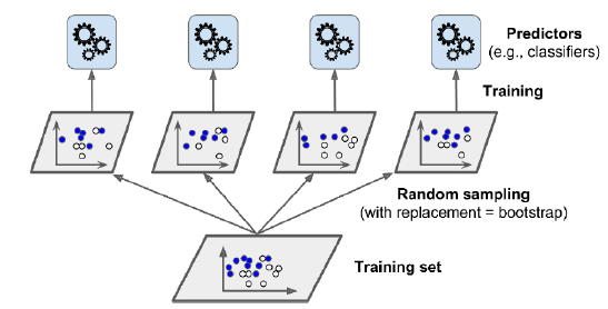 이러한 문제들을 해결하기 위해 training set을 random 한 subset을 뽑아 학습을 시켜보는 방식이 Bagging이다.