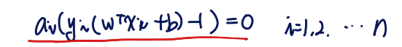 위 식을 만족해야한다. 이때, 두 가지 상황에 대해 살펴볼 수 있다. 첫 번째는 ai가 0인 경우이다. 이때는 yi(wTxi+b)-1 이 0이 아닐 수도 있다. ai 가 0보다 큰 경우는 yi(wTxi+b)-1 가 0이어야한다.