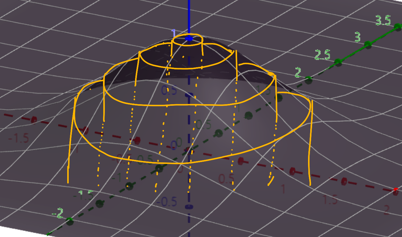 우리는 이쯤에서 위 식이 기하학적으로 어떤 모습을 하고 있는지 생각해볼 필요가 있다. 아래 그림은 위 식을 3차원 평면에 나타낸 모습이다.