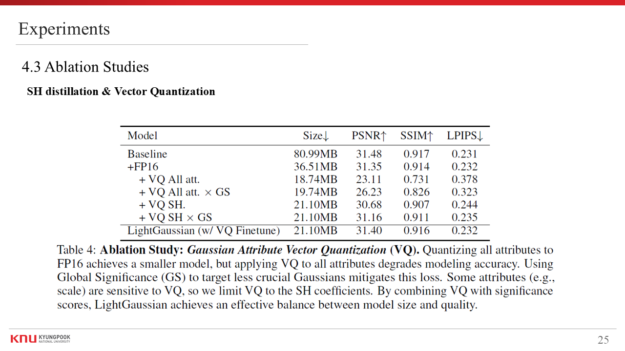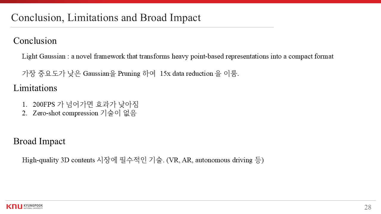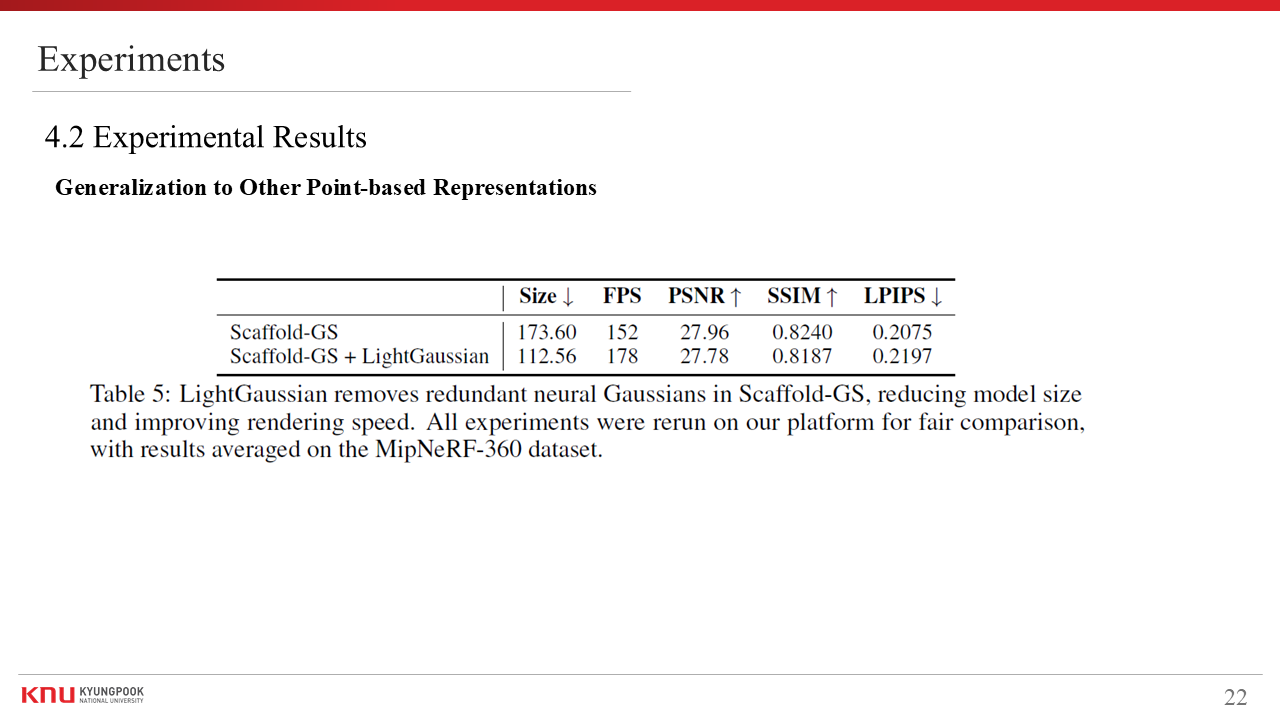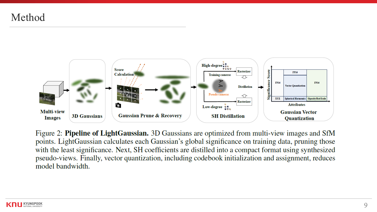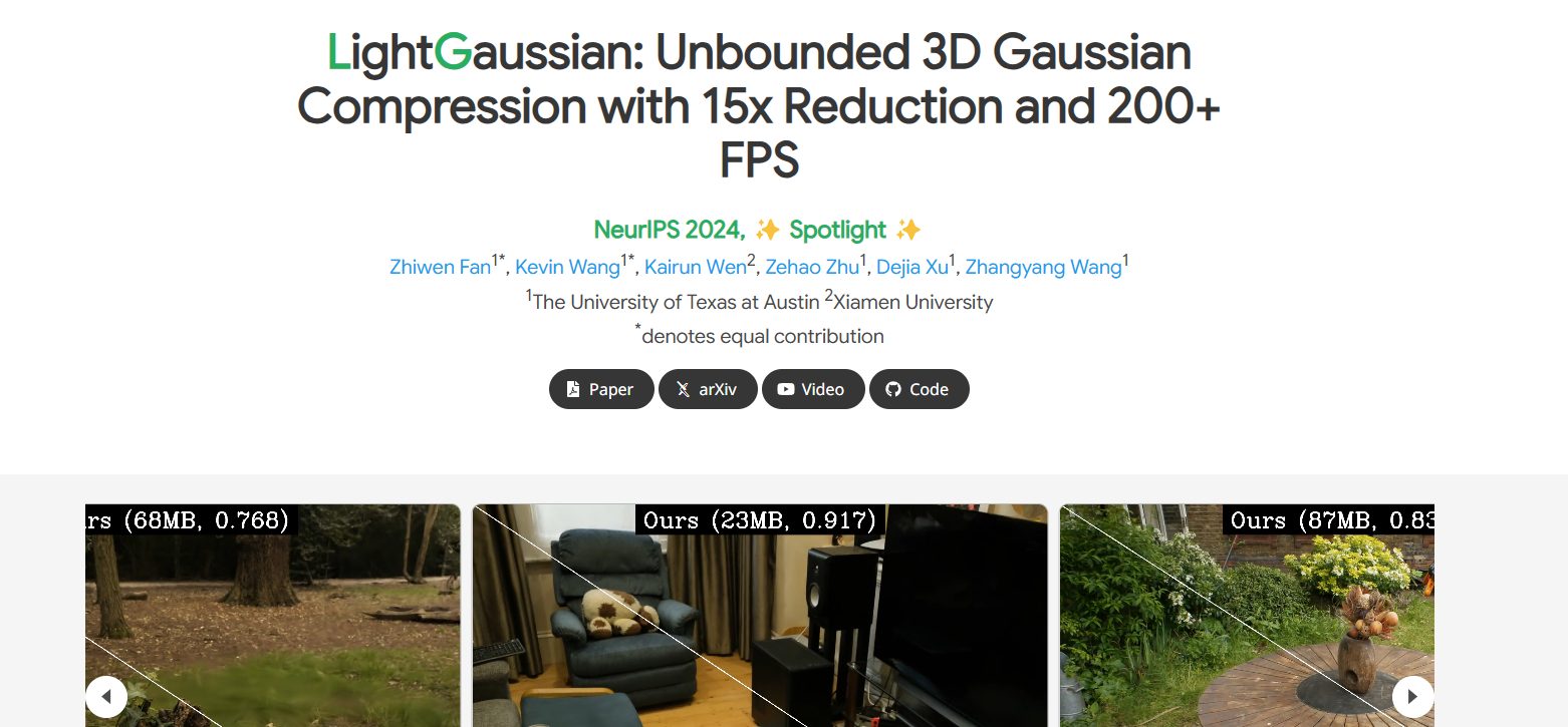 - Title : LightGaussian: Unbounded 3D Gaussian Compression with 15x Reduction and 200+ FPS