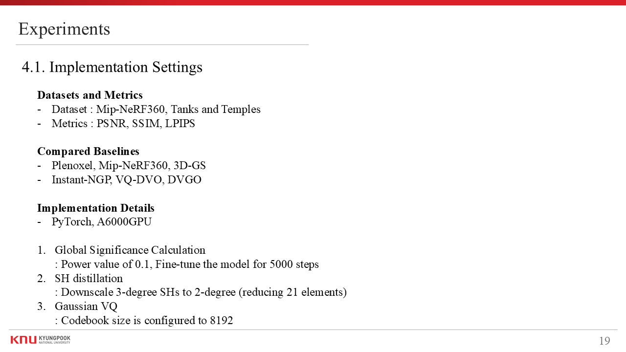 | [3DGS] Compressed 3D Gaussian Splatting for Accelerated Novel View Synthesis (0) | 2025.05.01 |