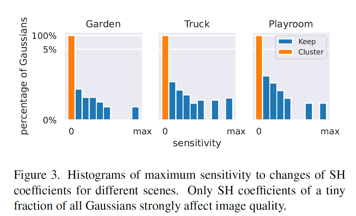 => we observe up to 15% splats do not impact training images (zero sensitivity => prune)