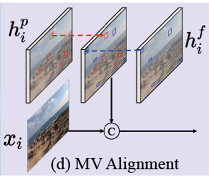 => Motion vectors can effectively align reference frames with current frame although they are less precise than optical flow