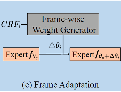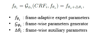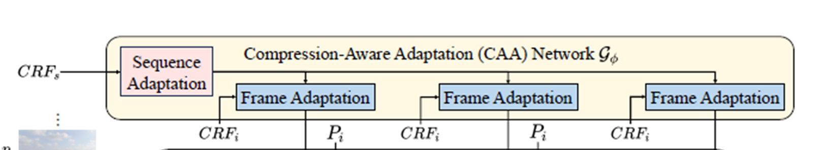 CAA Networks G_ɸ utilizes CRF_s to estimate sequence-adaptive parameters and perform frame adaptation based on CRF_i