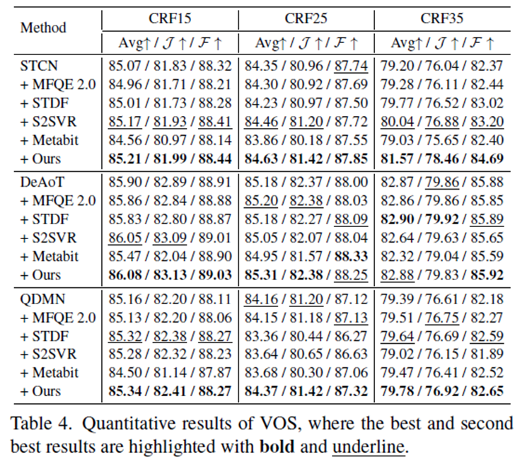 1)verifying the quality enhancement performance on seen, unseen, and highly compressed scenario.