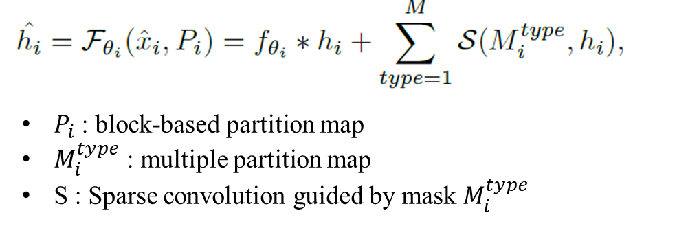 We propose to dynamically assign different filters for regions based on the partition map.