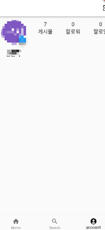 Home을 눌렀을 때 나오는 부분이다. 모자이크 된 부분은 계정 프로필사진, 이메일주소, 이름이 적혀있다. 하드코딩으로 만들어졌는데 나중에 구글 계정을 연동하면 계정에 따라 바뀔 수 있도록 만들 예정이다.