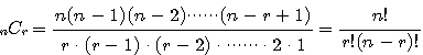 서로 다른 n개에서 r개를 고르는 상황을 아래 기호처럼 표시하고 조합(Combination)이라고 부른다.