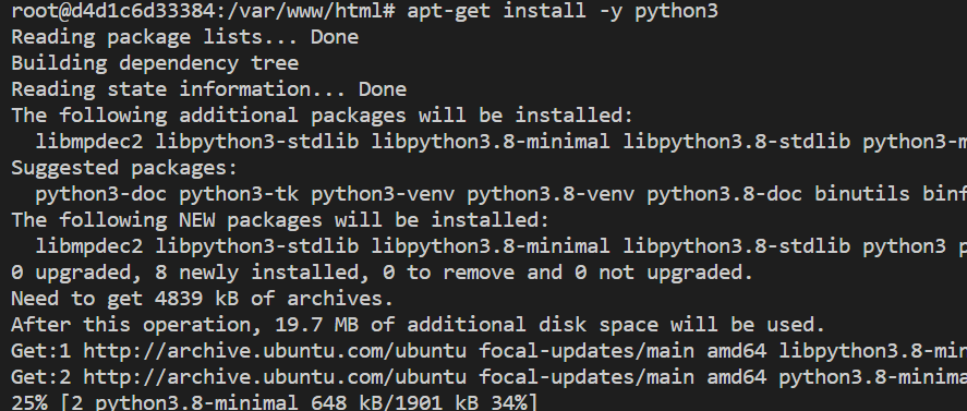 그럼 update가 진행된 뒤 python3가 설치되는 모습을 볼 수 있다.