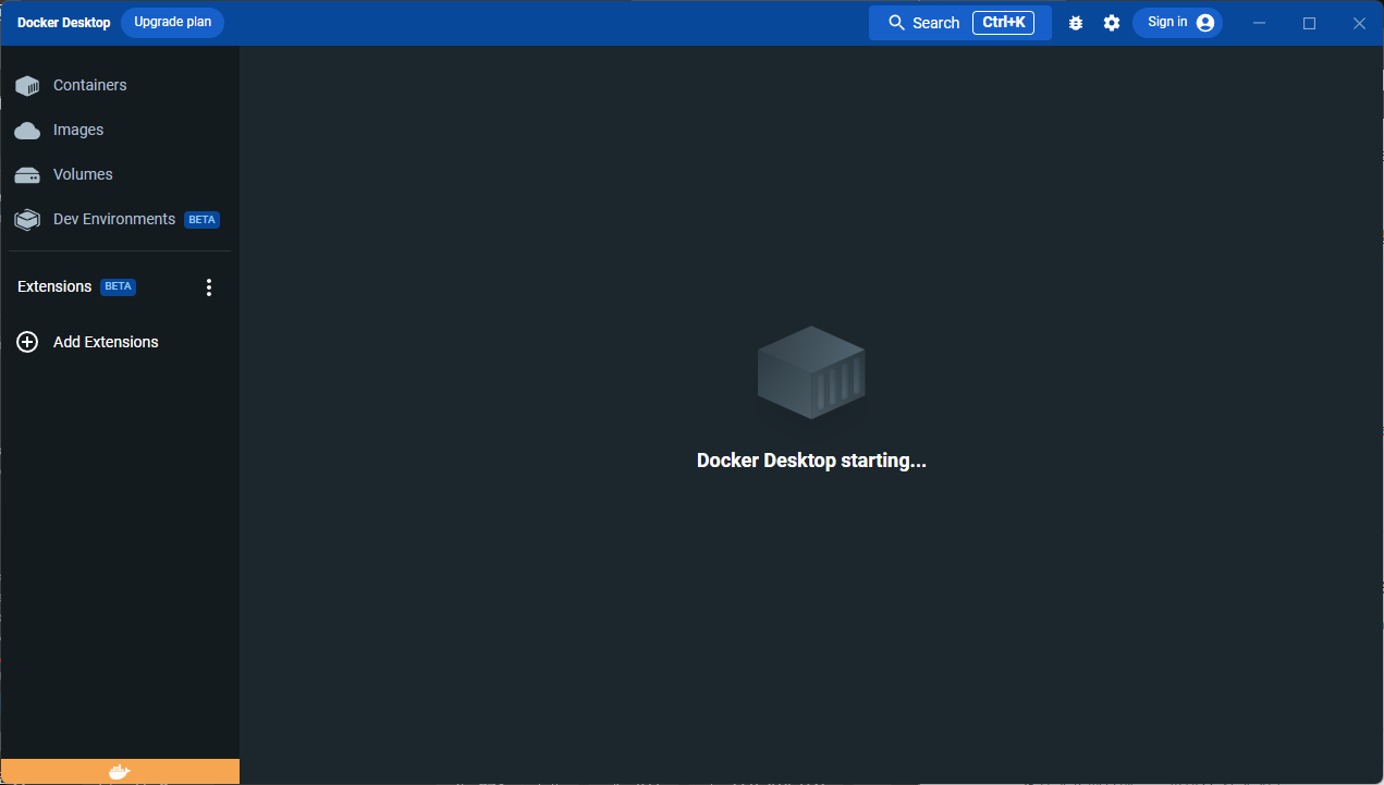 설치 완료 후 열면 이런 docker desktop이 실행된다. 나중에 container 등을 만들면 여기서 한 눈에 보고 관리할 수 있다.