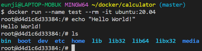 실행하면 진짜 우분투 환경이 터미널에서 실행된다.