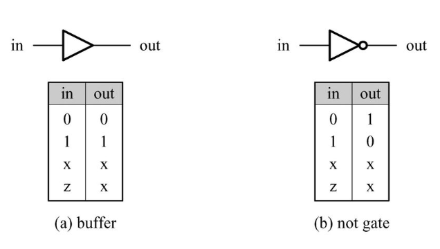 노이즈가 생겼을 때 버퍼를 통과하면 노이즈가 사라진다. 주목할 점은 z를 넣으면 x가 output으로 나온다. - not : 입력을 반대로 출력해주는 장치