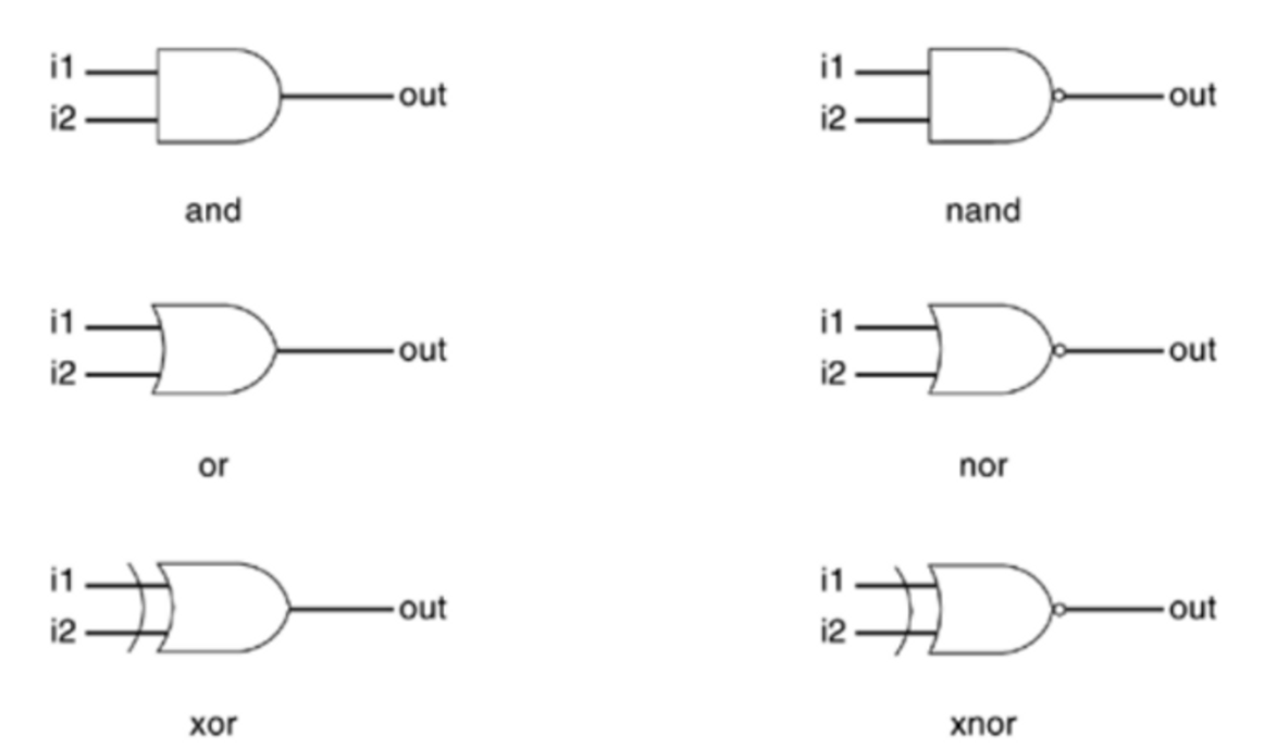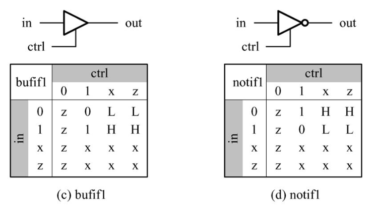 // #(rise_delay, fall_delay, turn-off delay) add #(5) al (out, i1, i2); //delay of 5 for all transition add #(4, 6) a2 (out, i1, i2); // rise delay = 4, fall delay = 6, turnoff = 4 bufif0 #(3,4,5) b1 (out, in, control); //rise = 3, in = 4, control = 5- 만약 두개라면 rise, fall delay가 설정되고 turn-off 는 더 작은 값으로 설정된다.