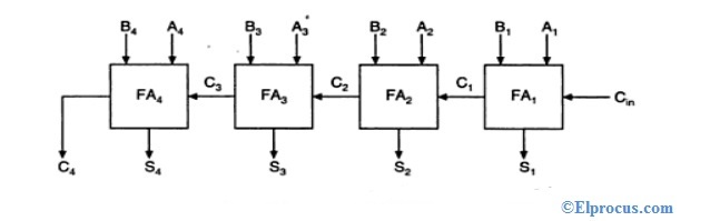 ripple carry full adder는 full adder를 4개 결합한 형태이다.
